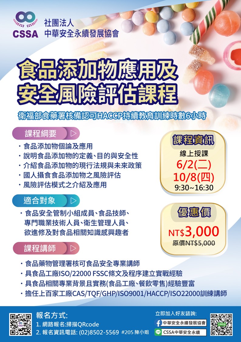 食品添加物應用及安全風險評估課程