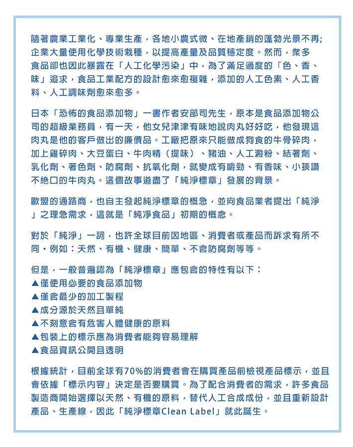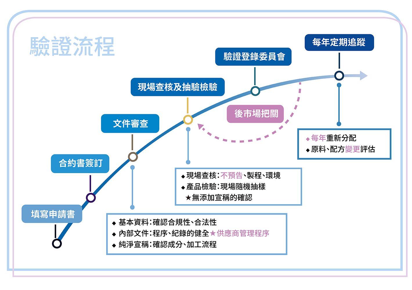 轉換至純淨標章,並經由食品安全專家組成的審議委員會審查,建立符合台灣及國際規範的認證標準。