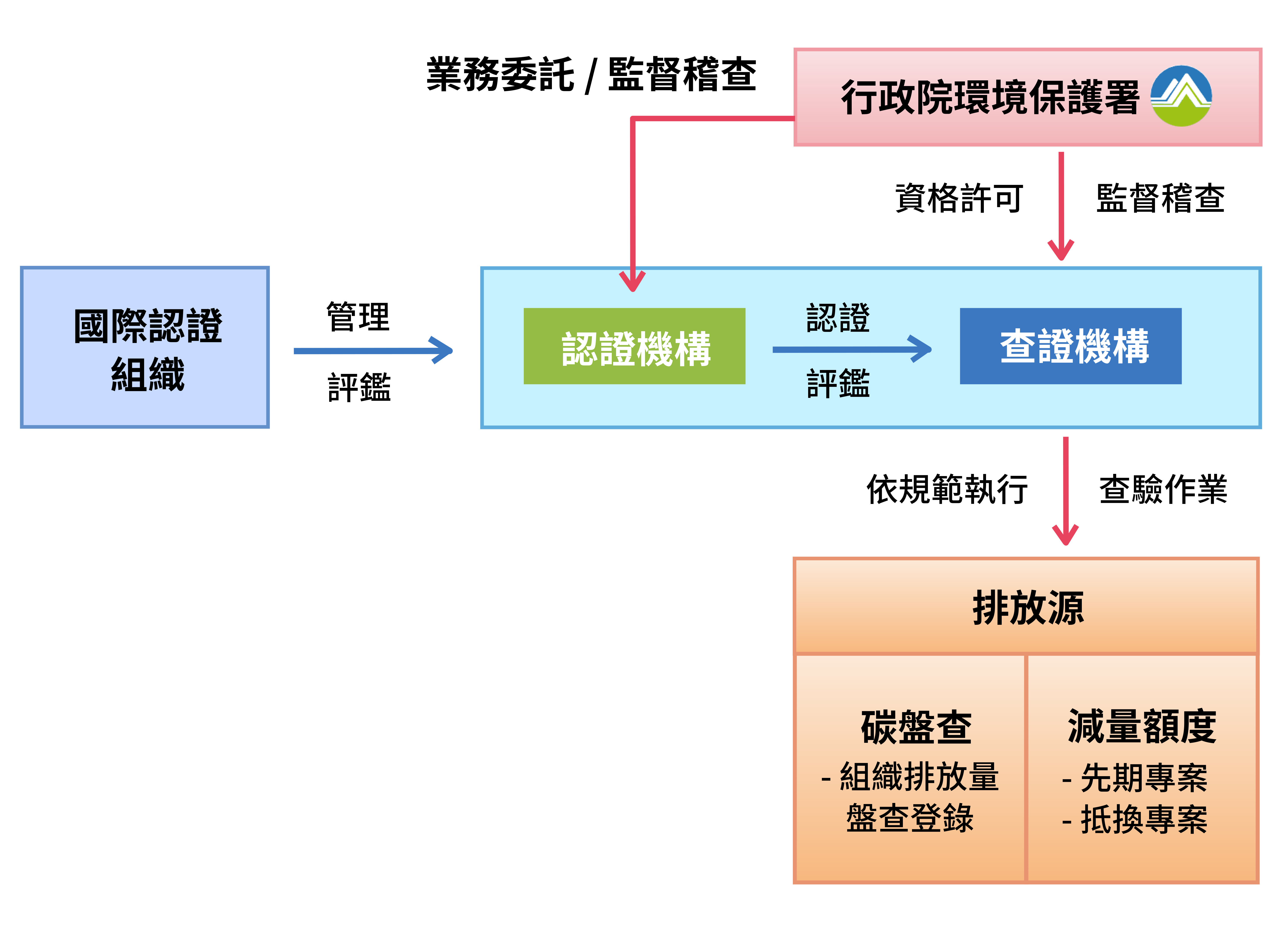 其中ISO 14064-1 組織層級溫室氣體排放與移除量化及報告附指引之規範,提供組織型溫室氣體(GHG)盤查設計與發展的要求;而ISO 14064-2 專案層級溫室氣體排放減量或移除增量之量化、監督及報告附指引之規範,提供GHG排放減少或移除專案的規劃及執行標準。